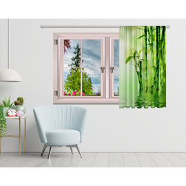 Draperie ECOfabric realizata din poliester reciclat post-consum, semitransparent, asigura intimitatea dorita, greutate textil 210g, imprimata digital, culori vii rezistente la spalat, poate fi calcata, finisata cu rejansa lata de 6,5 cm din bumbac.