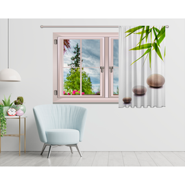 Draperie ECOfabric realizata din poliester reciclat post-consum, semitransparent, asigura intimitatea dorita, greutate textil 210g, imprimata digital, culori vii rezistente la spalat, poate fi calcata, finisata cu rejansa lata de 6,5 cm din bumbac.