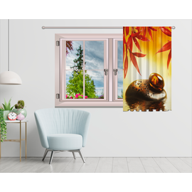 Draperie ECOfabric realizata din poliester reciclat post-consum, semitransparent, asigura intimitatea dorita, greutate textil 210g, imprimata digital, culori vii rezistente la spalat, poate fi calcata, finisata cu rejansa lata de 6,5 cm din bumbac.