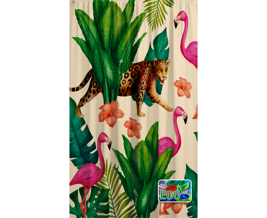 Draperie ECOfabric realizata din poliester reciclat post-consum, semitransparent, asigura intimitatea dorita, greutate textil 210g, imprimata digital, culori vii rezistente la spalat, poate fi calcata, finisata cu rejansa lata de 6,5 cm din bumbac.