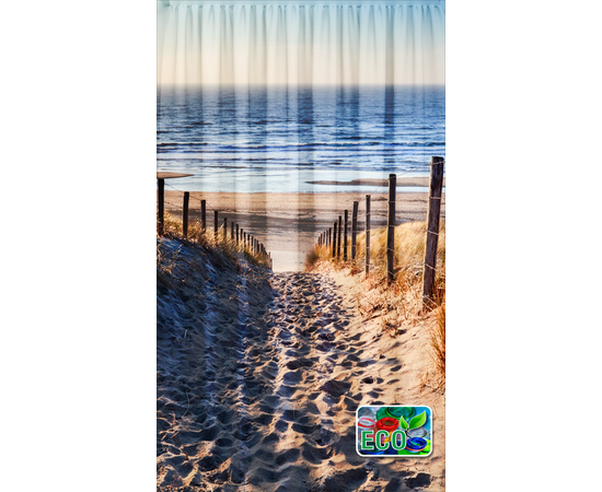 Draperie ECOfabric realizata din poliester reciclat post-consum, semitransparent, asigura intimitatea dorita, greutate textil 210g, imprimata digital, culori vii rezistente la spalat, poate fi calcata, finisata cu rejansa lata de 6,5 cm din bumbac.