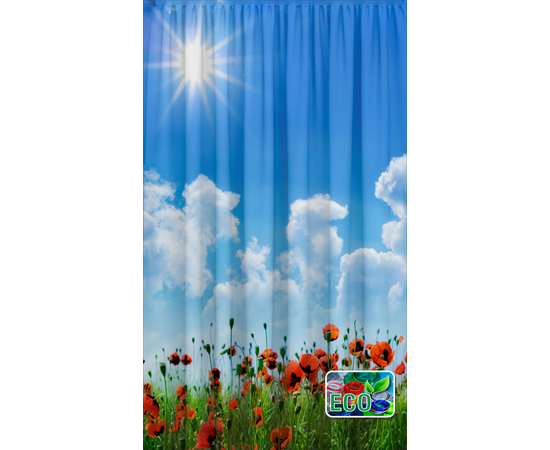 Draperie ECOfabric realizata din poliester reciclat post-consum, semitransparent, asigura intimitatea dorita, greutate textil 210g, imprimata digital, culori vii rezistente la spalat, poate fi calcata, finisata cu rejansa lata de 6,5 cm din bumbac.