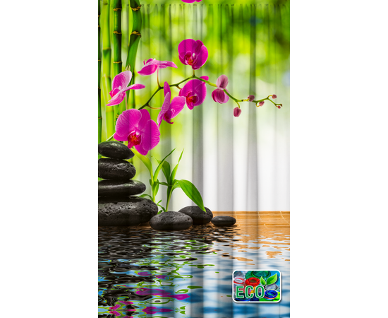 Draperie ECOfabric realizata din poliester reciclat post-consum, semitransparent, asigura intimitatea dorita, greutate textil 210g, imprimata digital, culori vii rezistente la spalat, poate fi calcata, finisata cu rejansa lata de 6,5 cm din bumbac.