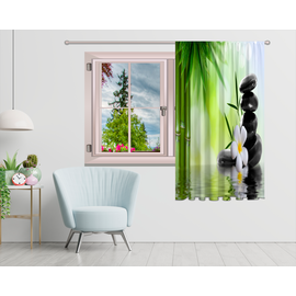 Draperie ECOfabric realizata din poliester reciclat post-consum, semitransparent, asigura intimitatea dorita, greutate textil 210g, imprimata digital, culori vii rezistente la spalat, poate fi calcata, finisata cu rejansa lata de 6,5 cm din bumbac.