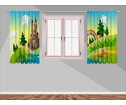Set Draperii ECOfabric realizate din 100% poliester reciclat post-consum, semitransparent, greutate textil 210g, culori vii rezistente la spalat, pot fi calcate, finisate cu rejansa lata de 6,5 cm din bumbac, imprimate digital.