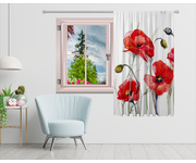 Set Draperii ECOfabric realizate din 100% poliester reciclat post-consum, semitransparent, greutate alb 210g, culori vii rezistente la spalat, finisate cu rejansa lata de 6,5 cm din bumbac, imprimate digital.