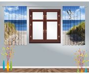 Set Draperii ECOfabric realizate din 100% poliester reciclat post-consum, semitransparent, greutate textil 210g, culori vii rezistente la spalat, pot fi calcate, finisate cu rejansa lata de 6,5 cm din bumbac, imprimate digital.
