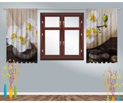 Set Draperii ECOfabric realizate din 100% poliester reciclat post-consum, semitransparent, greutate textil 210g, culori vii rezistente la spalat, pot fi calcate, finisate cu rejansa lata de 6,5 cm din bumbac, imprimate digital.