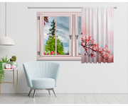 Set Draperii ECOfabric realizate din 100% poliester reciclat post-consum, semitransparent, greutate alb 210g, culori vii rezistente la spalat, finisate cu rejansa lata de 6,5 cm din bumbac, imprimate digital.