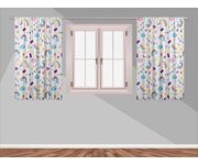 Set Draperii ECOfabric realizate din 100% poliester reciclat post-consum, semitransparent, greutate textil 210g, culori vii rezistente la spalat, pot fi calcate, finisate cu rejansa lata de 6,5 cm din bumbac, imprimate digital.