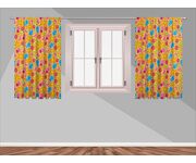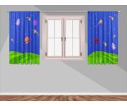 Set Draperii ECOfabric realizate din 100% poliester reciclat post-consum, semitransparent, greutate textil 210g, culori vii rezistente la spalat, pot fi calcate, finisate cu rejansa lata de 6,5 cm din bumbac, imprimate digital.