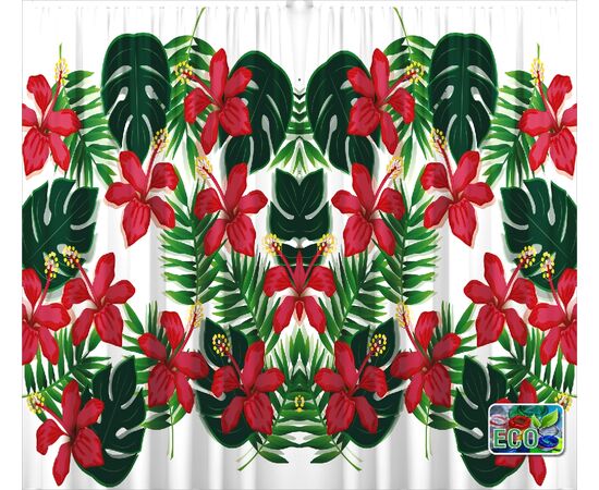 Set Draperii Blackout Homeline, realizate din material textil opac, ce nu permite patrunderea luminii, caldurii si a zgomotului din exterior. Material textil moale, elegant, poliester 100%, 250g/mp alb, material textil din trei straturi alb/negru/alb, imprimat digital pe o fata, culori vii resistente la spalat. Finisate cu rejansa lata de 6,5 cm din bumbac.