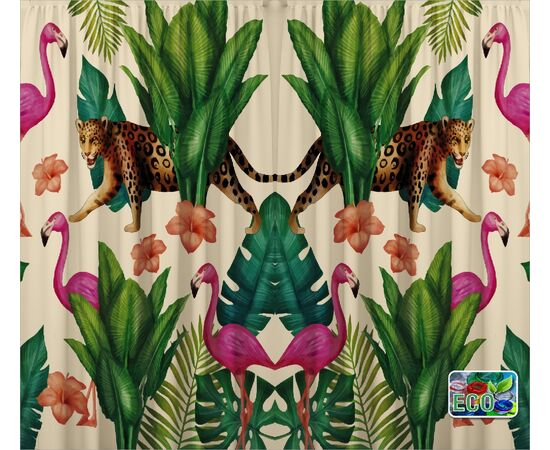 Set Draperii Blackout Homeline, realizate din material textil opac, ce nu permite patrunderea luminii, caldurii si a zgomotului din exterior. Material textil moale, elegant, poliester 100%, 250g/mp alb, material textil din trei straturi alb/negru/alb, imprimat digital pe o fata, culori vii resistente la spalat. Finisate cu rejansa lata de 6,5 cm din bumbac.