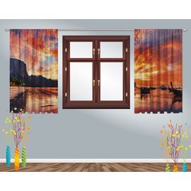 Set Draperii Blackout Homeline, realizate din material textil opac, ce nu permite patrunderea luminii, caldurii si a zgomotului din exterior. Material textil moale, elegant, poliester 100%, 250g/mp alb, material textil din trei straturi alb/negru/alb, imprimat digital pe o fata, culori vii resistente la spalat. Finisate cu rejansa lata de 6,5 cm din bumbac.