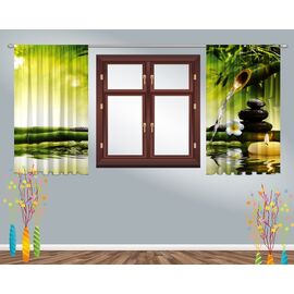Set Draperii Catifea MagicLine, realizate din material textil opac de calitate superioara. Material textil moale, catifelat, elegant, placut la atingere, poliester 100%, 300g/mp alb crem imprimat digital pe o fata, absoarbe lumina, zgomotul din exterior asigurand intimitatea dorita, culori vii rezistente la spalat. Finisate cu rejansa lata 6,5 cm de bumbac.