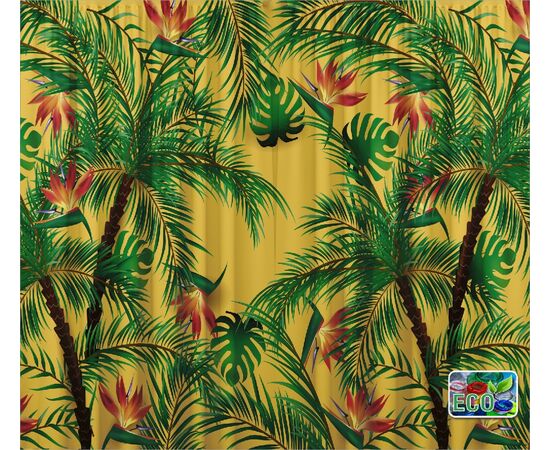 Set Draperii ECOfabric realizate din 100% poliester reciclat post-consum, semitransparent, greutate alb 210g, culori vii rezistente la spalat, finisate cu rejansa lata de 6,5 cm din bumbac, imprimate digital.