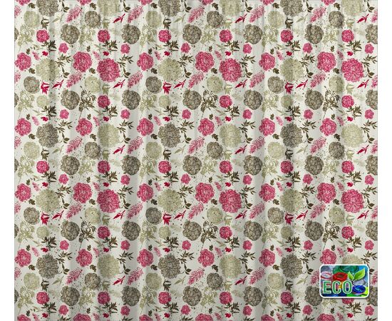 Set Draperii ECOfabric realizate din 100% poliester reciclat post-consum, semitransparent, greutate alb 210g, culori vii rezistente la spalat, finisate cu rejansa lata de 6,5 cm din bumbac, imprimate digital.