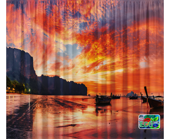 Set Draperii ECOfabric realizate din 100% poliester reciclat post-consum, semitransparent, greutate alb 210g, culori vii rezistente la spalat, finisate cu rejansa lata de 6,5 cm din bumbac, imprimate digital.