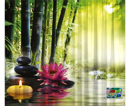 Set Draperii ECOfabric realizate din 100% poliester reciclat post-consum, semitransparent, greutate textil 210g, culori vii rezistente la spalat, pot fi calcate, finisate cu rejansa lata de 6,5 cm din bumbac, imprimate digital.