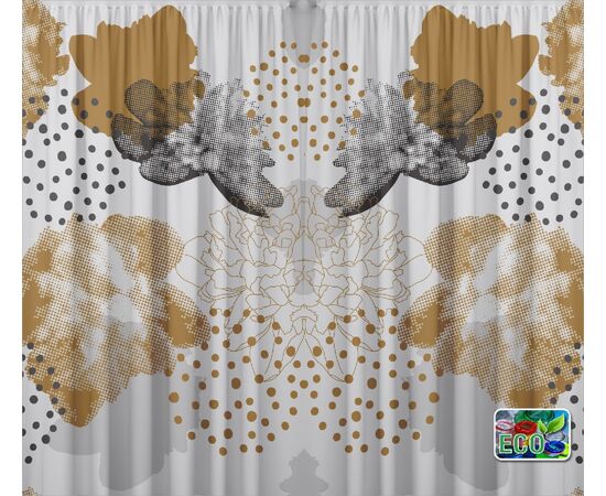 Set Draperii ECOfabric realizate din 100% poliester reciclat post-consum, semitransparent, greutate textil 210g, culori vii rezistente la spalat, pot fi calcate, finisate cu rejansa lata de 6,5 cm din bumbac, imprimate digital.
