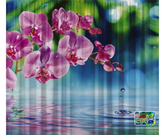 Set Draperii ECOfabric realizate din 100% poliester reciclat post-consum, semitransparent, greutate textil 210g, culori vii rezistente la spalat, pot fi calcate, finisate cu rejansa lata de 6,5 cm din bumbac, imprimate digital.