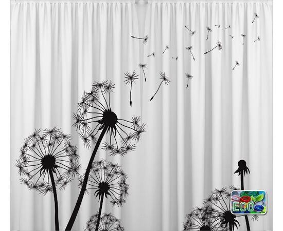 Set Draperii ECOfabric realizate din 100% poliester reciclat post-consum, semitransparent, greutate textil 210g, culori vii rezistente la spalat, pot fi calcate, finisate cu rejansa lata de 6,5 cm din bumbac, imprimate digital.