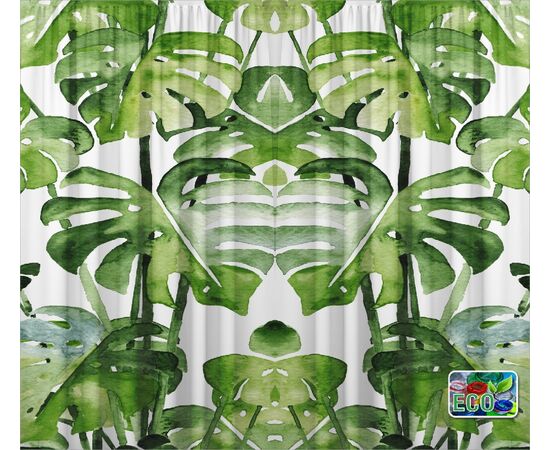 Set Draperii ECOfabric realizate din 100% poliester reciclat post-consum, semitransparent, greutate textil 210g, culori vii rezistente la spalat, pot fi calcate, finisate cu rejansa lata de 6,5 cm din bumbac, imprimate digital.