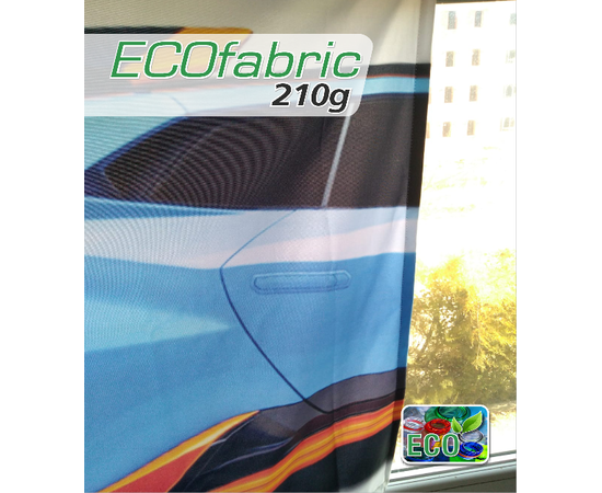 Set Draperii ECOfabric realizate din 100% poliester reciclat post-consum, semitransparent, greutate alb 210g, culori vii rezistente la spalat, finisate cu rejansa lata de 6,5 cm din bumbac, imprimate digital.