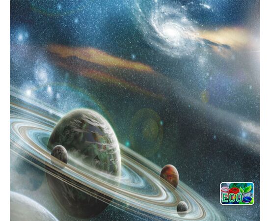 Set Draperii ECOfabric realizate din 100% poliester reciclat post-consum, semitransparent, greutate alb 210g, culori vii rezistente la spalat, finisate cu rejansa lata de 6,5 cm din bumbac, imprimate digital.