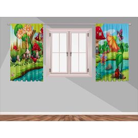 Set Draperii ECOfabric realizate din 100% poliester reciclat post-consum, semitransparent, greutate alb 210g, culori vii rezistente la spalat, finisate cu rejansa lata de 6,5 cm din bumbac, imprimate digital.