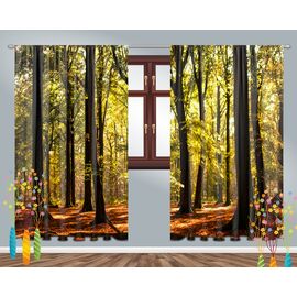 Set Draperii ECOfabric realizate din 100% poliester reciclat post-consum, semitransparent, greutate textil 210g, culori vii rezistente la spalat, pot fi calcate, finisate cu rejansa lata de 6,5 cm din bumbac, imprimate digital.