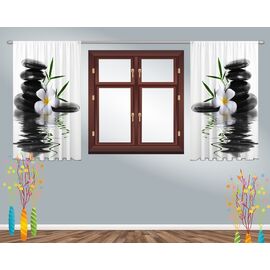 Set Draperii ECOfabric realizate din 100% poliester reciclat post-consum, semitransparent, greutate textil 210g, culori vii rezistente la spalat, pot fi calcate, finisate cu rejansa lata de 6,5 cm din bumbac, imprimate digital.