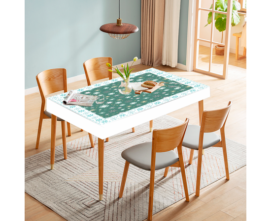 Fata de masa imprimata model Craciun, material semi transparent, lavabil, finisata cu tiv de jur imprejur, compozitie 100% poliester