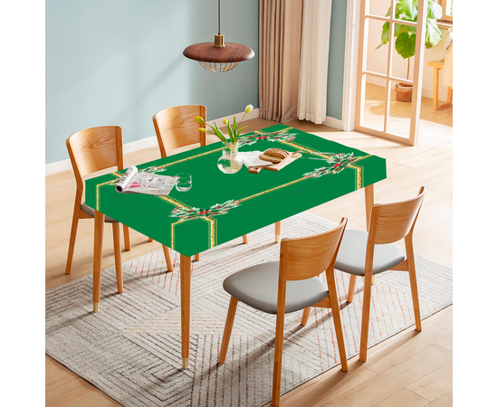 Fata de masa imprimata model Craciun, material semi transparent, lavabil, finisata cu tiv de jur imprejur, compozitie 100% poliester