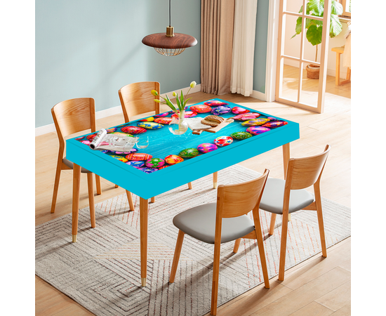 Fata de masa imprimata model Paste, material semi transparent, lavabil, finisata cu tiv de jur imprejur, compozitie 100% poliester