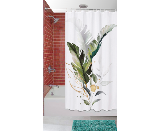 Perdea de dus BathLine textil 100% poliester, dimensiune 100x200 cm, impermeabila, prevazuta cu capse de plastic, poate fi spalata manual sau automat, imprimata digital cu cerneala ecologica. Nu contine carligele de agatat.