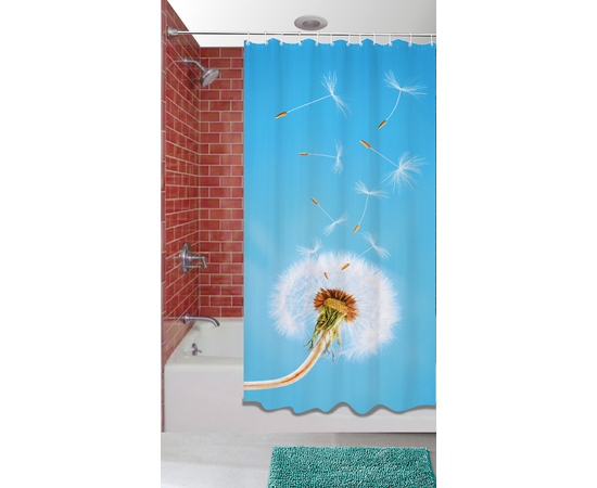 Perdea de dus BathLine textil 100% poliester, dimensiune 100x200 cm, impermeabila, prevazuta cu capse de plastic, poate fi spalata manual sau automat, imprimata digital cu cerneala ecologica. Nu contine carligele de agatat.