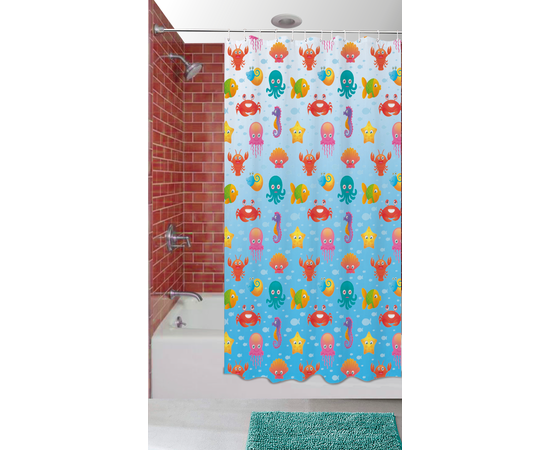 Perdea de dus BathLine textil 100% poliester, dimensiune 100x200 cm, impermeabila, prevazuta cu capse de plastic, poate fi spalata manual sau automat, imprimata digital cu cerneala ecologica. Nu contine carligele de agatat.