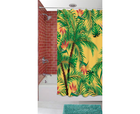 Perdea de dus BathLine textil 100% poliester, dimensiune 100x200 cm, impermeabila, prevazuta cu capse de plastic, poate fi spalata manual sau automat, imprimata digital cu cerneala ecologica. Nu contine carligele de agatat.