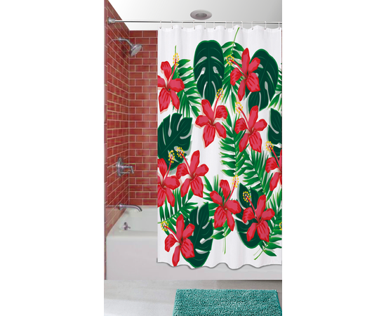 Perdea de dus BathLine textil 100% poliester, dimensiune 100x200 cm, impermeabila, prevazuta cu capse de plastic, poate fi spalata manual sau automat, imprimata digital cu cerneala ecologica. Nu contine carligele de agatat.