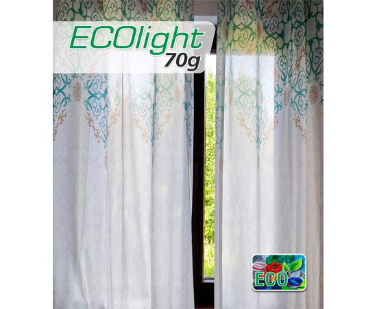 Set Perdele ECOLight '70' realizate din material textil de 70g/mp (nu este voal), cu tesatura deasa, subtire, putin satinat, asigura trecerea luminii dar ofera si intimitatea dorita, culori vii rezistente la spalat, pot fi spalate manual sau automat, se usuca rapid, pot fi calcate la temperatura joasa, imprimate digital cu cerneala ecologica pe baza de apa. Finisate cu rejansa de bumbac de 6.5 cm.