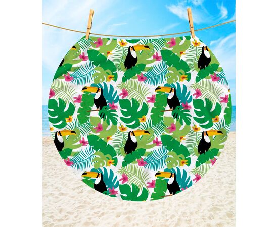 Prosop plaja VelourLine forma rotunda Ø150 cm, suprafata imprimata este catifelata, fina, placut la atingere, compozitie bumbac 60% ce absoarbe foarte bine apa si 40% poliester ce se usuca rapid, tesatura grosime de 350g/mp, nu este afectat de razele solare si de clorina, poate fi spalat automat, culori rezistente la spalat.