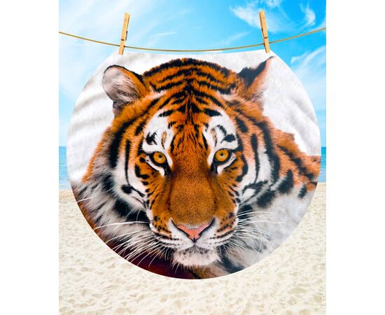 Prosop plaja VelourLine forma rotunda Ø150 cm, suprafata imprimata este catifelata, fina, placut la atingere, compozitie bumbac 60% ce absoarbe foarte bine apa si 40% poliester ce se usuca rapid, tesatura grosime de 350g/mp, nu este afectat de razele solare si de clorina, poate fi spalat automat, culori rezistente la spalat.
