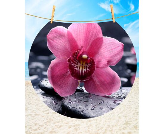 Prosop plaja VelourLine forma rotunda Ø150 cm, suprafata imprimata este catifelata, fina, placut la atingere, compozitie bumbac 60% ce absoarbe foarte bine apa si 40% poliester ce se usuca rapid, tesatura grosime de 350g/mp, nu este afectat de razele solare si de clorina, poate fi spalat automat, culori rezistente la spalat.