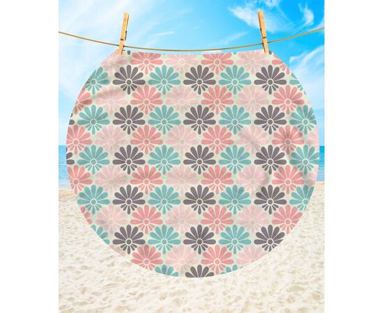 Prosop plaja VelourLine forma rotunda Ø150 cm, suprafata imprimata este catifelata, fina, placut la atingere, compozitie bumbac 60% ce absoarbe foarte bine apa si 40% poliester ce se usuca rapid, tesatura grosime de 350g/mp, nu este afectat de razele solare si de clorina, poate fi spalat automat, culori rezistente la spalat.