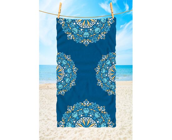 Prosop plaja VelourLine, suprafata imprimata este catifelata, fina, placuta la atingere, compozitie bumbac 60% ce absoarbe foarte bine apa si 40% poliester ce se usuca rapid, tesatura de 350g/mp, nu este afectat de razele solare si de clorina, poate fi spalat automat, culori rezistente la spalat.