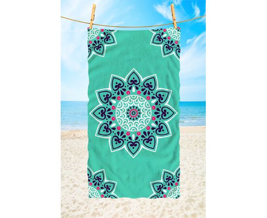Prosop plaja VelourLine, suprafata imprimata este catifelata, fina, placuta la atingere, compozitie bumbac 60% ce absoarbe foarte bine apa si 40% poliester ce se usuca rapid, tesatura de 350g/mp, nu este afectat de razele solare si de clorina, poate fi spalat automat, culori rezistente la spalat.