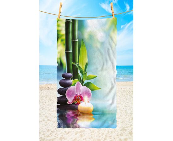 Prosop plaja VelourLine, suprafata imprimata este catifelata, fina, placuta la atingere, compozitie bumbac 60% ce absoarbe foarte bine apa si 40% poliester ce se usuca rapid, tesatura de 350g/mp, nu este afectat de razele solare si de clorina, poate fi spalat automat, culori rezistente la spalat.