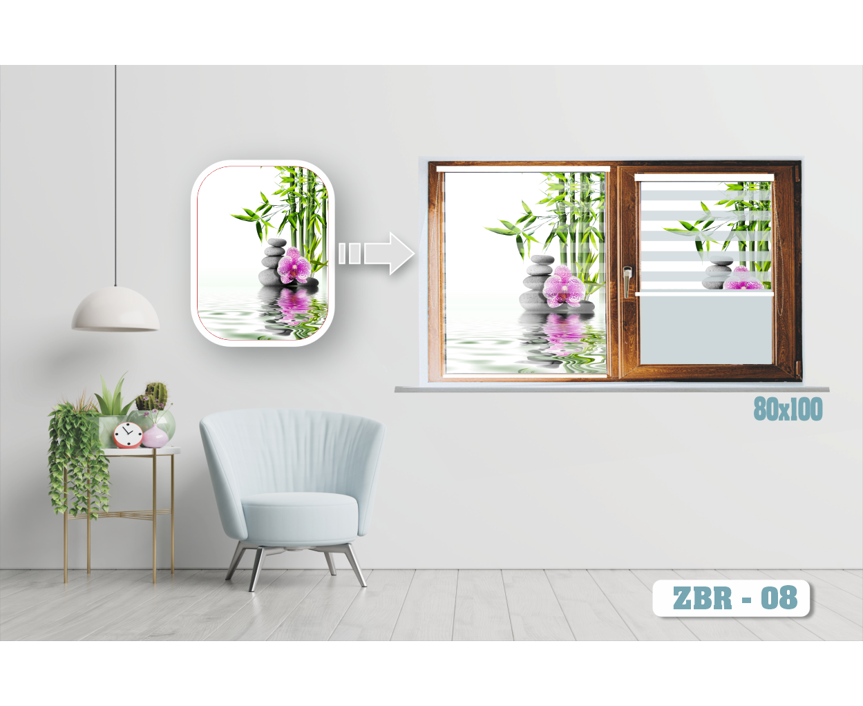 Roleta zebra (zi noapte) imprimata cu sistem complet de prindere si accesorii. Poate fi montata cu usurinta pe rama ferestrei sau in tavan. Poti alege imaginea preferata de la modele grafice simple pana la peisaje din natura.Roletele zebra ofera acelasi grad de umbrire ca si cele traditionale cu un plus pentru designul inovativ al tesaturii zi noapte.Materialul contine alternativ benzi de tesatura transparenta si opaca si prin actionare permite ajustarea nivelului de lumina, in functie de preferinte.