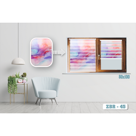 Roleta zebra (zi noapte) imprimata cu sistem complet de prindere si accesorii. Poate fi montata cu usurinta pe rama ferestrei sau in tavan. Poti alege imaginea preferata de la modele grafice simple pana la peisaje din natura.Roletele zebra ofera acelasi grad de umbrire ca si cele traditionale cu un plus pentru designul inovativ al tesaturii zi noapte.Materialul contine alternativ benzi de tesatura transparenta si opaca si prin actionare permite ajustarea nivelului de lumina, in functie de preferinte.